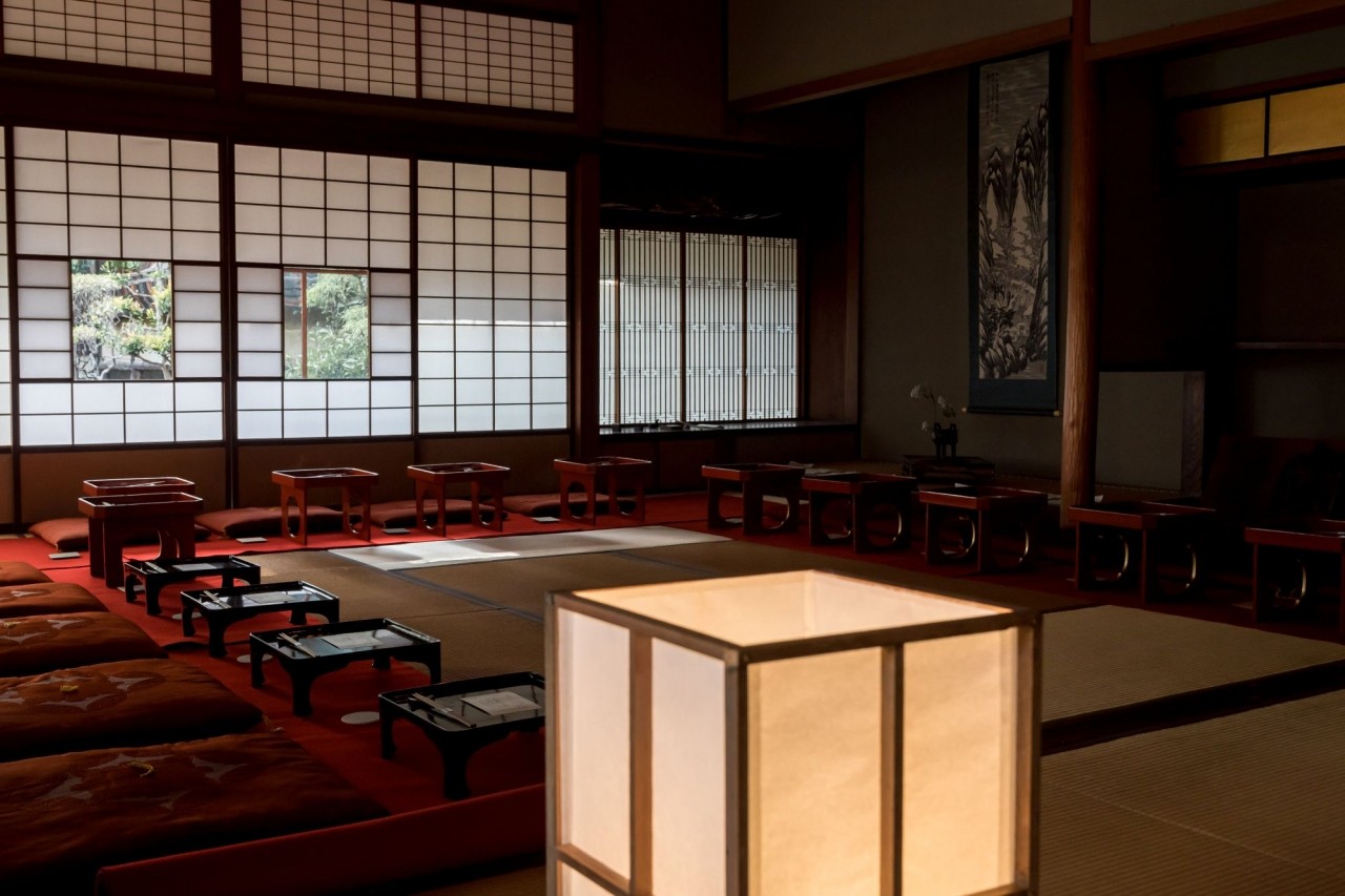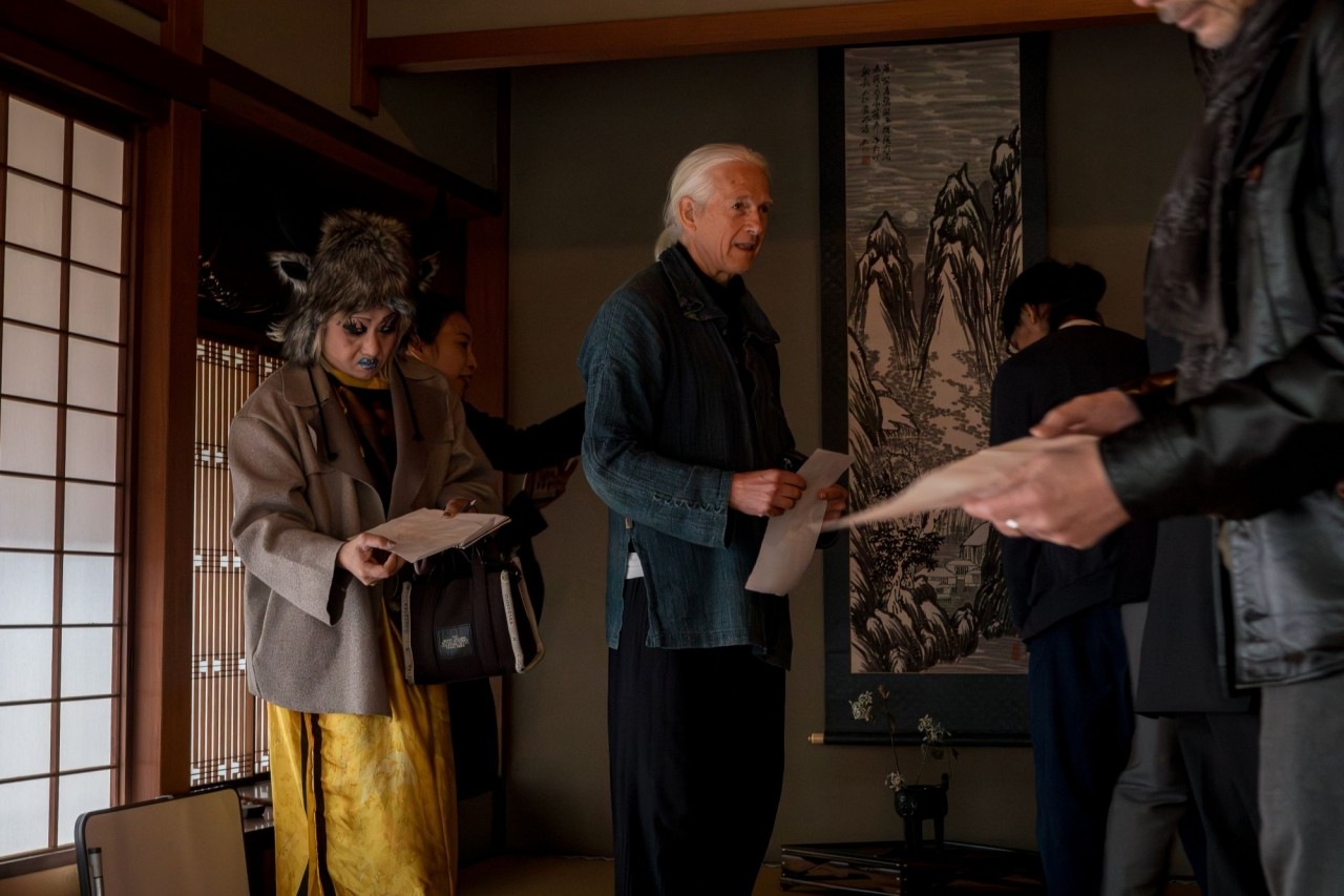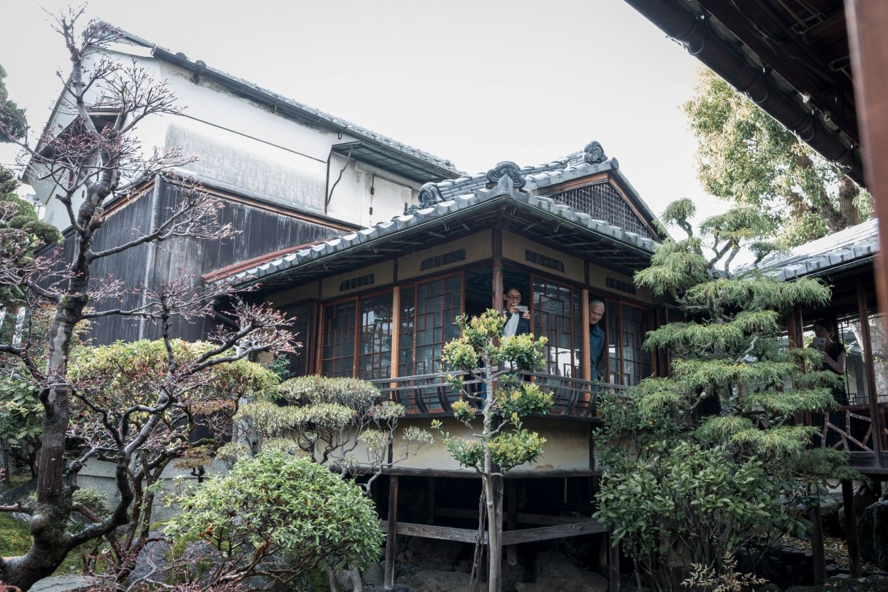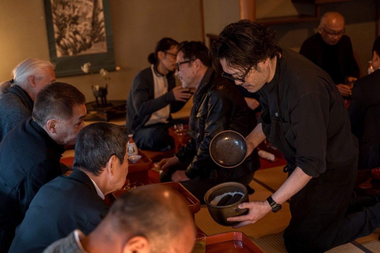 場所を安藤家へと移し、第二幕へ。安藤家は、秀吉に長浜の自治を委ねられた長浜十人衆として、代々、町の文化と経済の発展に力を尽くした。1905年(明治38年)、12代目の安藤與惣次郎が北国街道沿いに10年余りの年月をかけて建てた近代和風建築だ。離れの「小蘭亭」は、安藤家から内装の一切を託された北大路魯山人の渾身の編集が尽くされている。当時の目撃者のような学芸員の横谷賢一郎(近江ARS)の魯山人語りに一同が聴き入った。