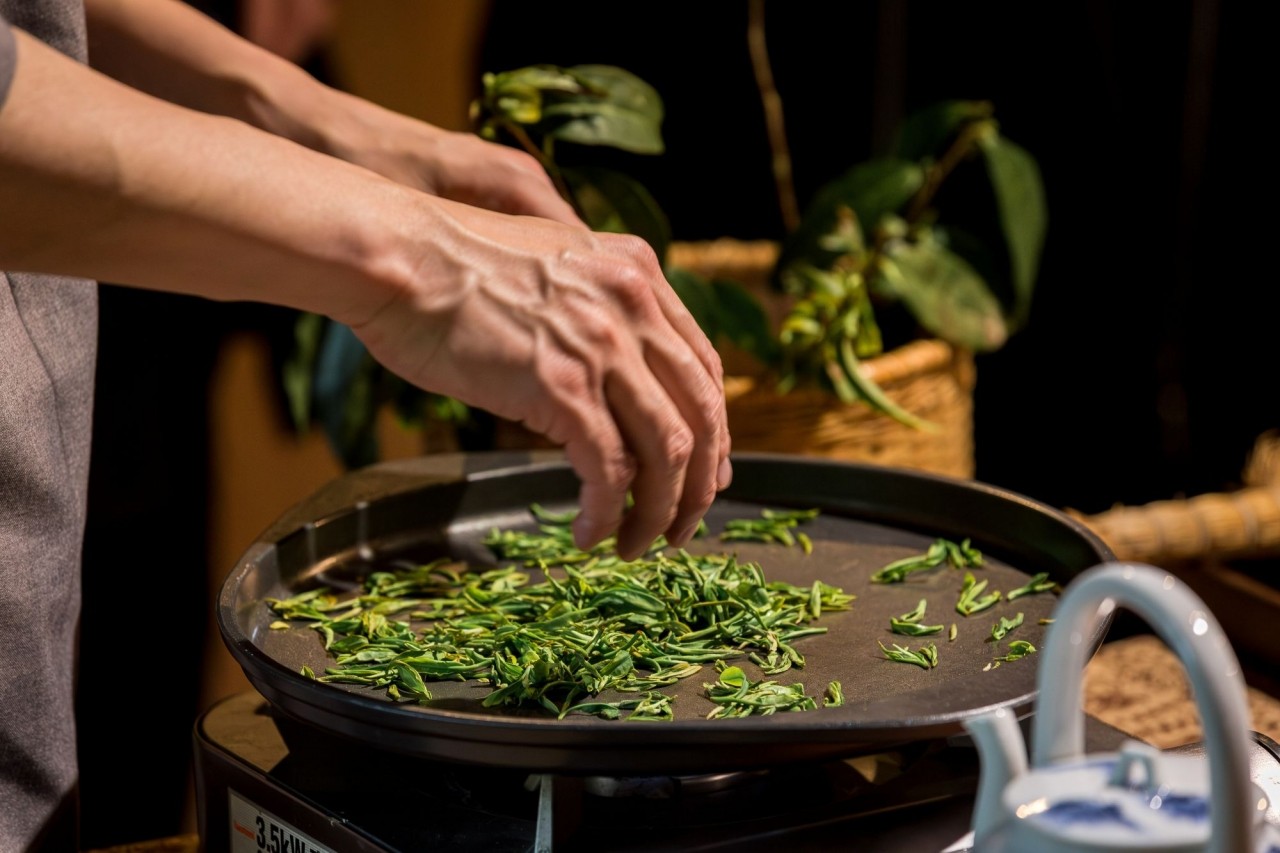 茶葉の水分量の変化を手で感じながら時間をかけて丁寧に炒っていく。
