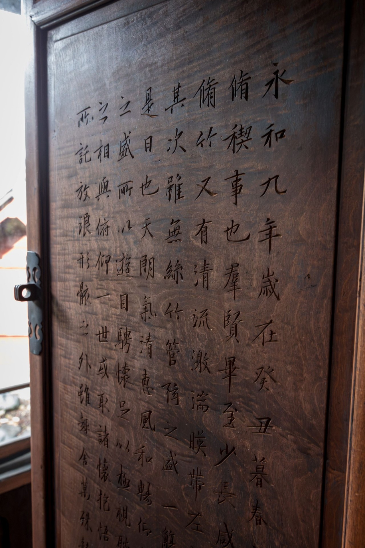 小蘭亭の入り口の扉には、魯山人が臨書した「蘭亭曲水の序」が篆刻されている。